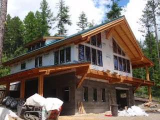 If I were to name an emotion I feel about our new windows, it would be "thrilled". They are beautiful, high-quality windows, and we couldn't be happier with our choices. We were pleasantly surprised by finally seeing the view we will have from our dining room, our bedroom, the third floor loft...all breathtaking. Seeing the light dance along the ceiling and through the scissor trusses, and looking from the outside in the dark with the work lights illuminating throughout the shell of the interior=wonderful. We are overjoyed at having this milestone behind us in success.